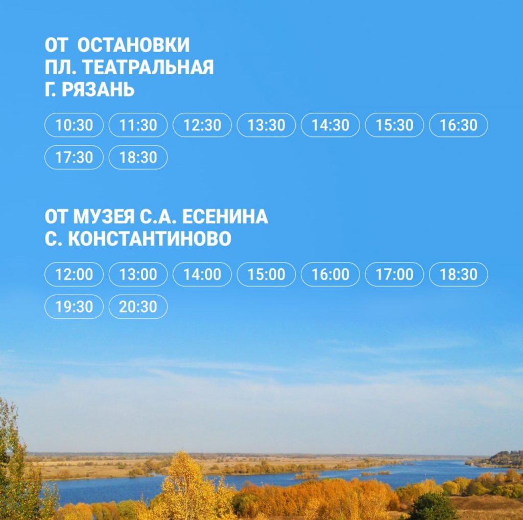 Региональный Минтранс опубликовал график движения бесплатного автобуса из Рязани до Государственного музея-заповедника им. С.А. Есенина.