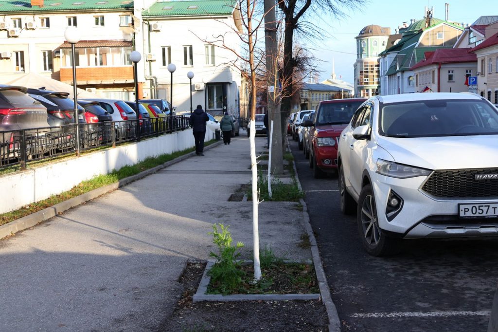 Тем временем в Рязани начали белить уличные деревья.
