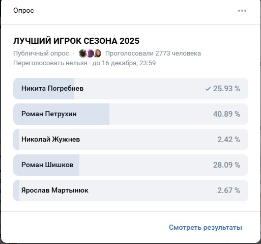 Предварительная тройка после первого тура не изменилась, за Романом Петрухиным следует Роман Шишков, а за ним – Никита Погребнев. Голосование продлится до 23:59.