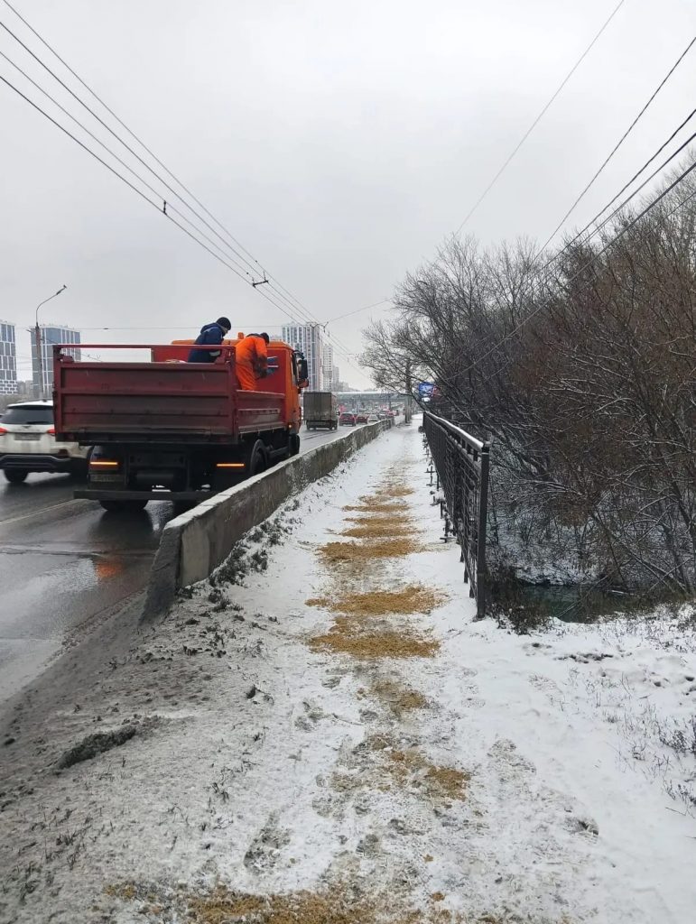 Тем временем, не дожидаясь прихода морозов, коммунальщики активно обрабатывают пешеходные зоны противогололедными средствами. Фото своей работы сотрудники МБУ «Дирекция благоустройства города» выкладывают в официальных пабликах учреждения.
