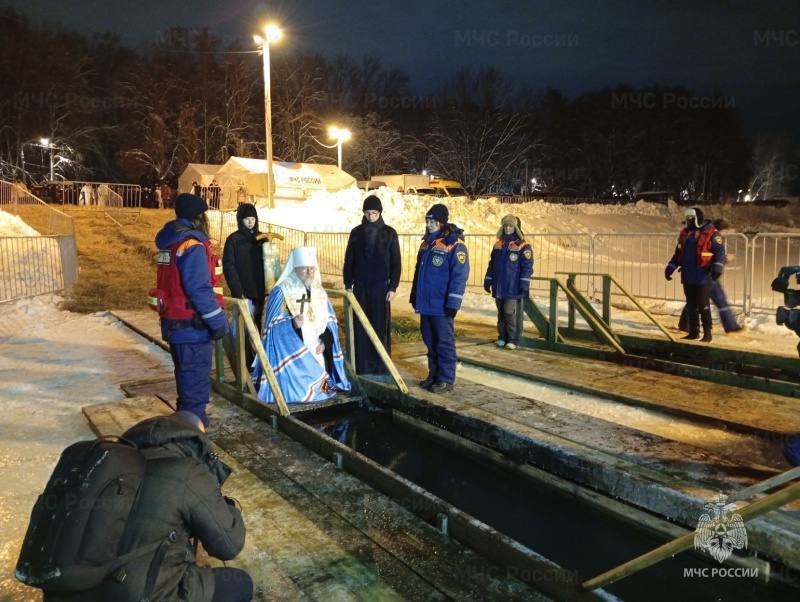 А сотрудники ГУ МЧС России по Рязанской области на самом крупном месте обряда в Рязани – Ореховом озере – обеспечивали безопасность и комфорт для людей на специально отведенной площадке.